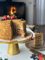 .كعكة العسل مع طبقات موس فستق ومُربى التوت البري شغل البيت